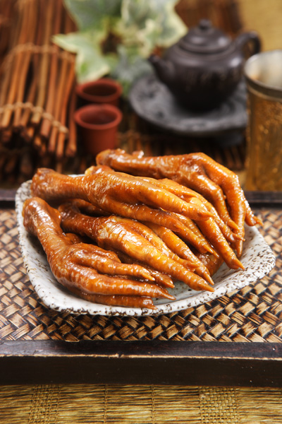 雞腳--富含蛋白質、鐵質,並且雞腳的脆骨及韌帶也具風味,適合滷味當零嘴,也可燉食進補。